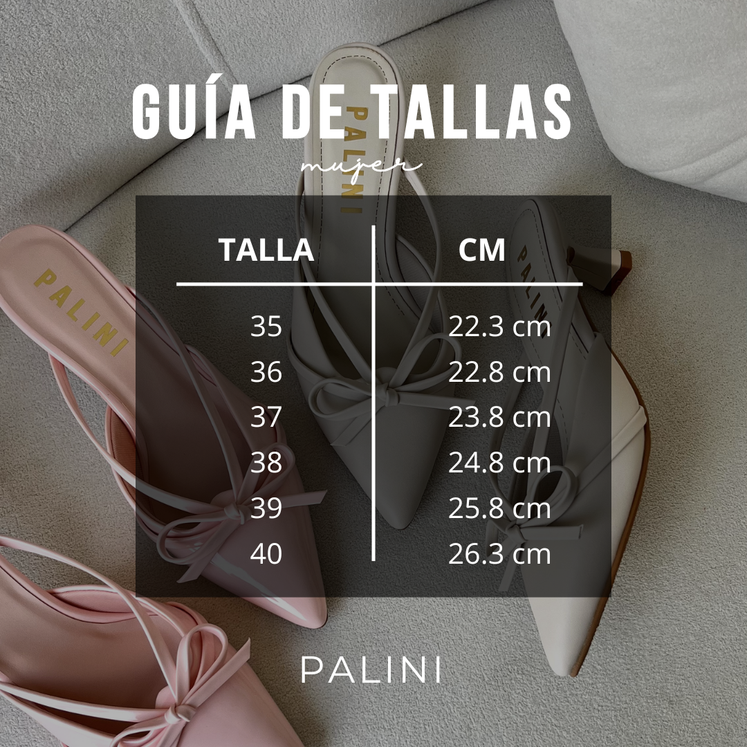Ten en cuenta que nuestras guías consideran el largo del pie pero no el ancho, ya que no trabajamos con medidas de ancho del calzado.